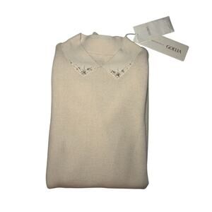 GOELIA Gloria NWT Size Large 100% Merino Wool Sweater Mock Neck Ivory