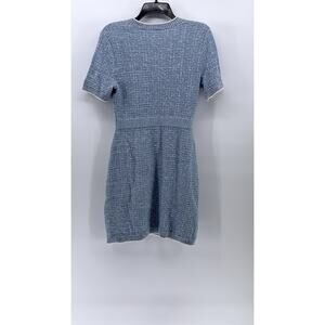 GOELIA Women's Blue-White Knit V-Neck Gathered Waist Button-Up Mini Dress SZ XS