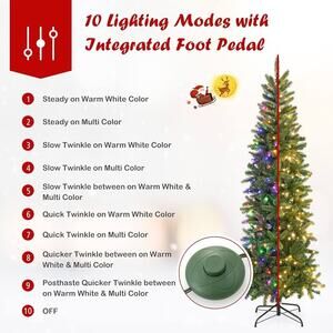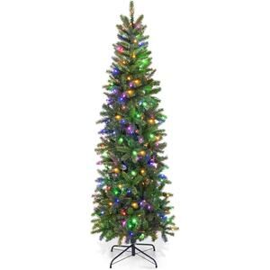 GOFLAME 6ft Pre-lit Pencil Christmas Tree, Artificial Christmas Tree with 270 LED Lights, 10 Light Modes, 648 Branch Tips, Metal Stand, Hinged Xmas Tree for Holiday Festival Decor