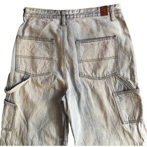 GOGO Barrel Leg Jeans Womens 28" Grunge Carpenter High Rise Light Wash Wide Leg