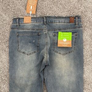 Stylish distressed flare jeans in a classic blue shade. Perfect for a casual day out.