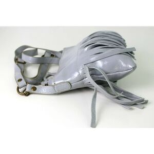 GOGO VOYAGE LIGHT GRAY PATENT GENUINE LEATHER FRINGE SLIM SHOULDER BAG HANDBAGMEASUREMENTS MADE ON EMPTY/FLAT ITEM :