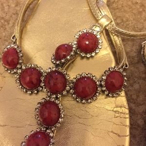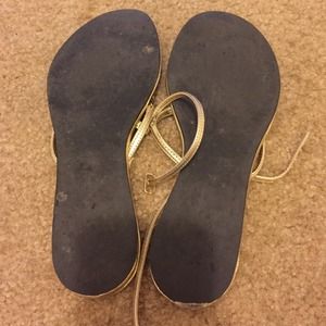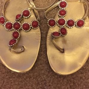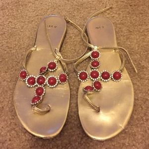 Preowned gold Apt. 9 flats size 6.5. Glamorous stones on top. These have definitely been worn a lot, which is why I am selling it so cheap. Worn edge of left heel (see photo). Measures 9.25" length