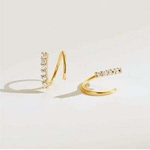 GOLD 14k Gold Plated 2 pairs Cubic Zirconia Spiral Earrings