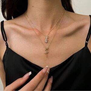 GOLD 14k Gold Plated 2pc Fairy CZ Necklace Set