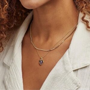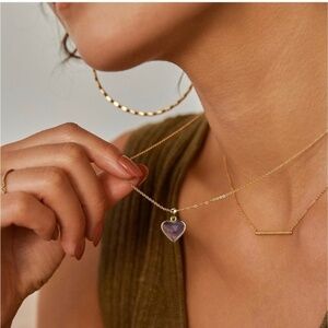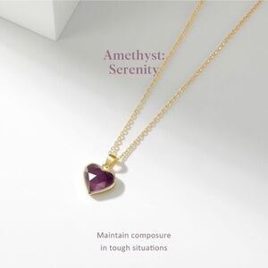 GOLD 14k Gold Plated Amethyst Stone Heart Necklace