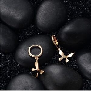 GOLD 14k Gold Plated Bow Huggie Hoop Earrings