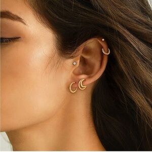 GOLD 14k Gold Plated CZ Hoop Stud 5 pairs Earring Set