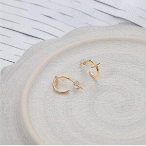 GOLD 14k Gold Plated Cross Huggie Hoop Earrings