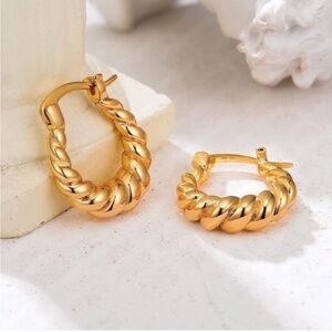 GOLD 14k Gold Plated Crossiant Huggie Hoop Earrings