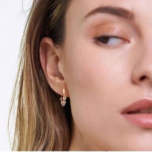 GOLD 14k Gold Plated Cubic Zirconia Tassel Heart Hoop Earrings
