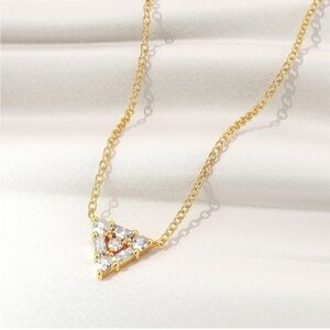 GOLD 14k Gold Plated Cubic Zirconia Triangle Pendant Necklace