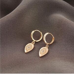 GOLD 14k Gold Plated Engraved Huggie Hoop Earrings