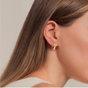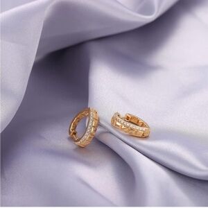 GOLD 14k Gold Plated Heart Cubic Zirconia Hoop Earrings