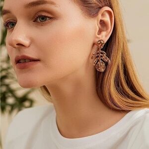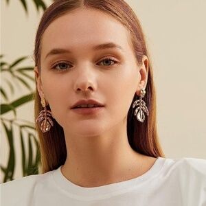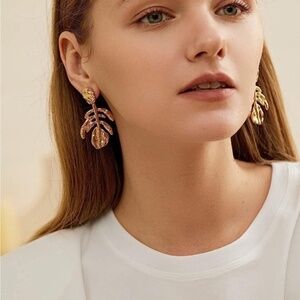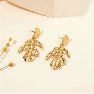 GOLD 14k Gold Plated Leaf Drop Earrings