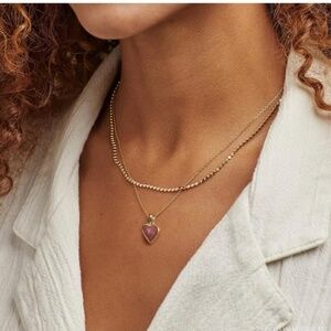 GOLD 14k Gold Plated Rhodochrosite Heart Stone Necklace