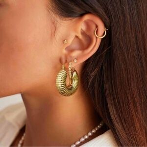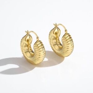 GOLD 14k Gold Plated Textured Huggie Hoop Earrings