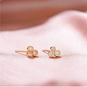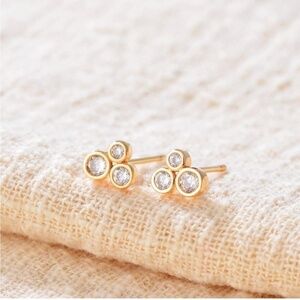 GOLD 14k Gold Plated Three Cubic Zirconia Stuff Earrings