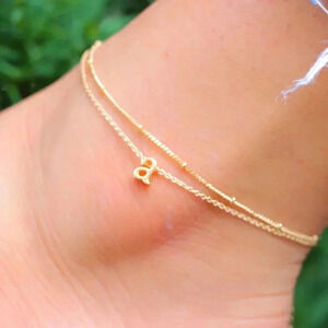 💛GOLD A to Z LETTER SPARKLE INITIAL ANKLET ALPHABET BRACELET GIFT, ELDM22279