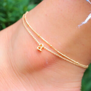 💛GOLD A to Z LETTER SPARKLE INITIAL ANKLET ALPHABET BRACELET GIFT, ELDM22279