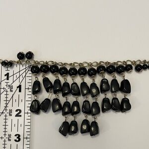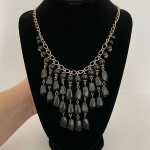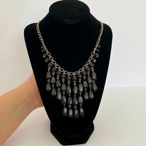 Gold Black Tiered Statement Necklace. Adjustable Length. Costume Jewelry