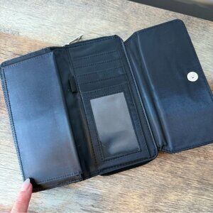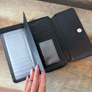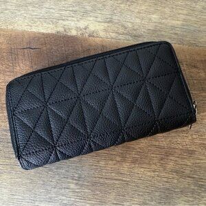 GOLD COAST Black Leather Trifold Wallet Quilted Pebbled