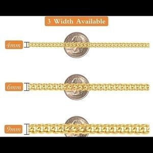 This listing is for a 6 mm 18k Gold plated Miami Cuban Link Chain. Please see the comparison photos that show this size and lengths available