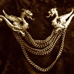 Dragon cloak clasp in gold. This is a screw on style which can be transferred to multiple garments. All screws, endless chain and washers are included.