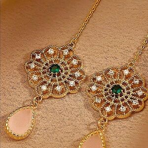 GOLD EMERALD GREEN WATER DROP EARRINGS