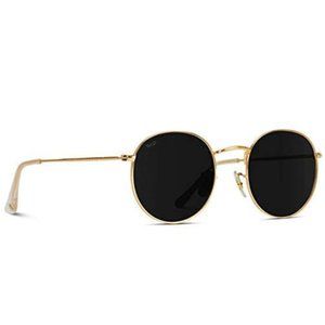 GOLD FRAME ROUND CIRCLE BLACK POLARIZED SUNGLASSES