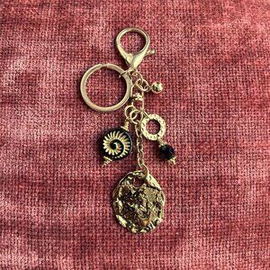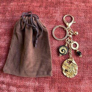GOLD HAMMERED NUGGET Black Ammonite Bag Charm