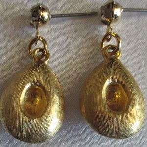 Gold hat pierced earrings with clear crystal studs. No post. Keep clean, polished, and vibrant with jewelry cleaner; (I use CONNOISSEURS PRECIOUS). Approx. measurements are: ½” W, and 1” H.