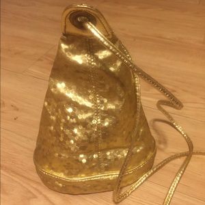 Gold sparkle lame cone shape evening bag...56 inch Crossbody or shoulder strap πππ