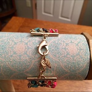 GOLD PINK TEAL BLACK BAIDED BRACELET