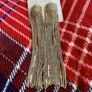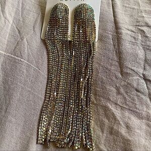 Oversized gold rhinestone tassel earrings. Also available in silver.