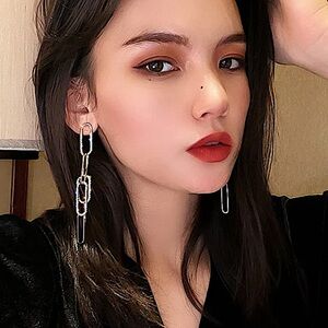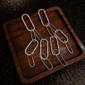 Rhinestone gold 18k GP chain Link earrings. Matching necklace listed.