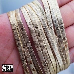GOLD PT "I LOVE YOU" ENGRAVED HERRINGBONE CHAIN