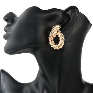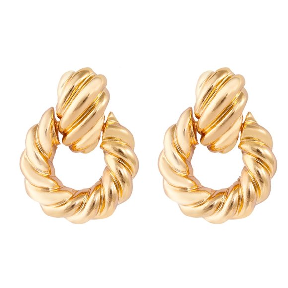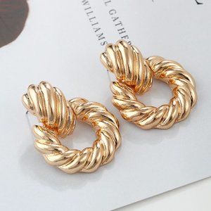 FUN GOLD STATEMENT GOLD ROUND DROP EARRINGS.