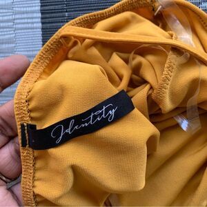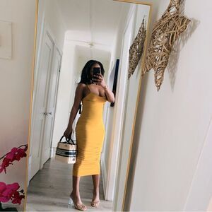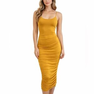 IDENTITY GOLD RUCHED MIDI DRESS S