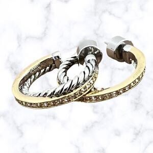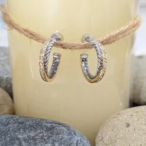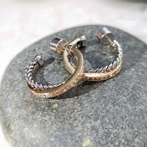 GOLD SILVER Two Tone Sparkle Twisted Rope Hoop Earrings