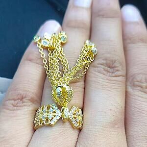 Gold plated zircon crown tassel fringe adjustable size ring.