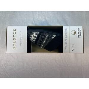 Brand New in Box - The GOLD TOE Women's Slippers in size small (6-7) offer ultimate comfort with their memory foam construction. The black slippers feature a slide style design, making them easy to put on and take off. The fabric upper material provides a soft and breathable feel, while the memory foam ensures a cozy fit for all-day wear. Perfect for lounging around the house or running quick errands, these slippers are a stylish and comfortable option for women.