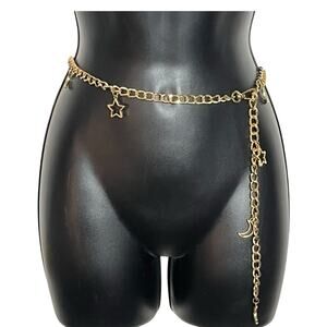 Up for sale, a beautiful gold celestial themed chain belt. It is in very good preowned condition. It fits like a S/M, measuring 40” from end to end