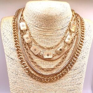GOLD TONE Layered Chain Necklace With Various Styles Of Chains 16”