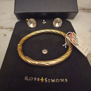 GOLD TWISTED BANGLE W/ MATCHING X-LARGE CRYSTAL STUDS