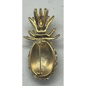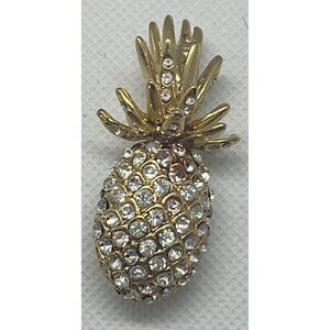Gold Tone Brooch Pineapple With Clear Rhinestones.