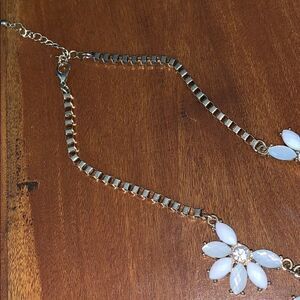 𝅺GOLD & White Bead and Crystal Chain Neckla…