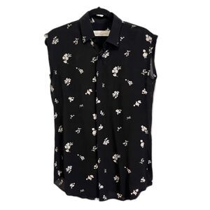 GOLDEN GOOSE Delux Brand Black Silk Floral Shirt Blouse Top Women's Size Small