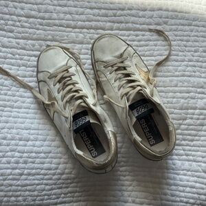 Classic white with gold star Golden Goose Deluxe Brand sneakers. Retails for $595 to almost $700.