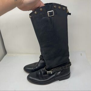 GOLDEN GOOSE Rosebowl Black Leather Custom Brass tall riding Boots size 37 Us 7. Gently used condition, Leather upper and sole